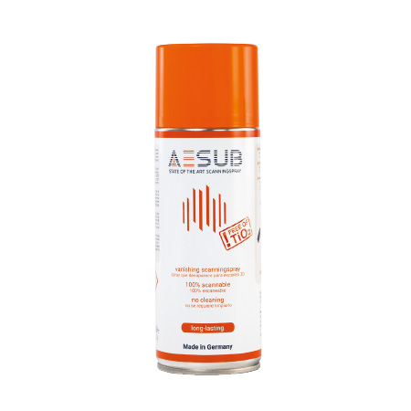 Gli spray AESUB sono senza biossido di titanio (TiO₂), garantiscono una finitura sottile e uniforme, e nelle versioni evaporanti non richiedono pulizia post-scan: un vantaggio concreto per l’efficienza del flusso di lavoro.